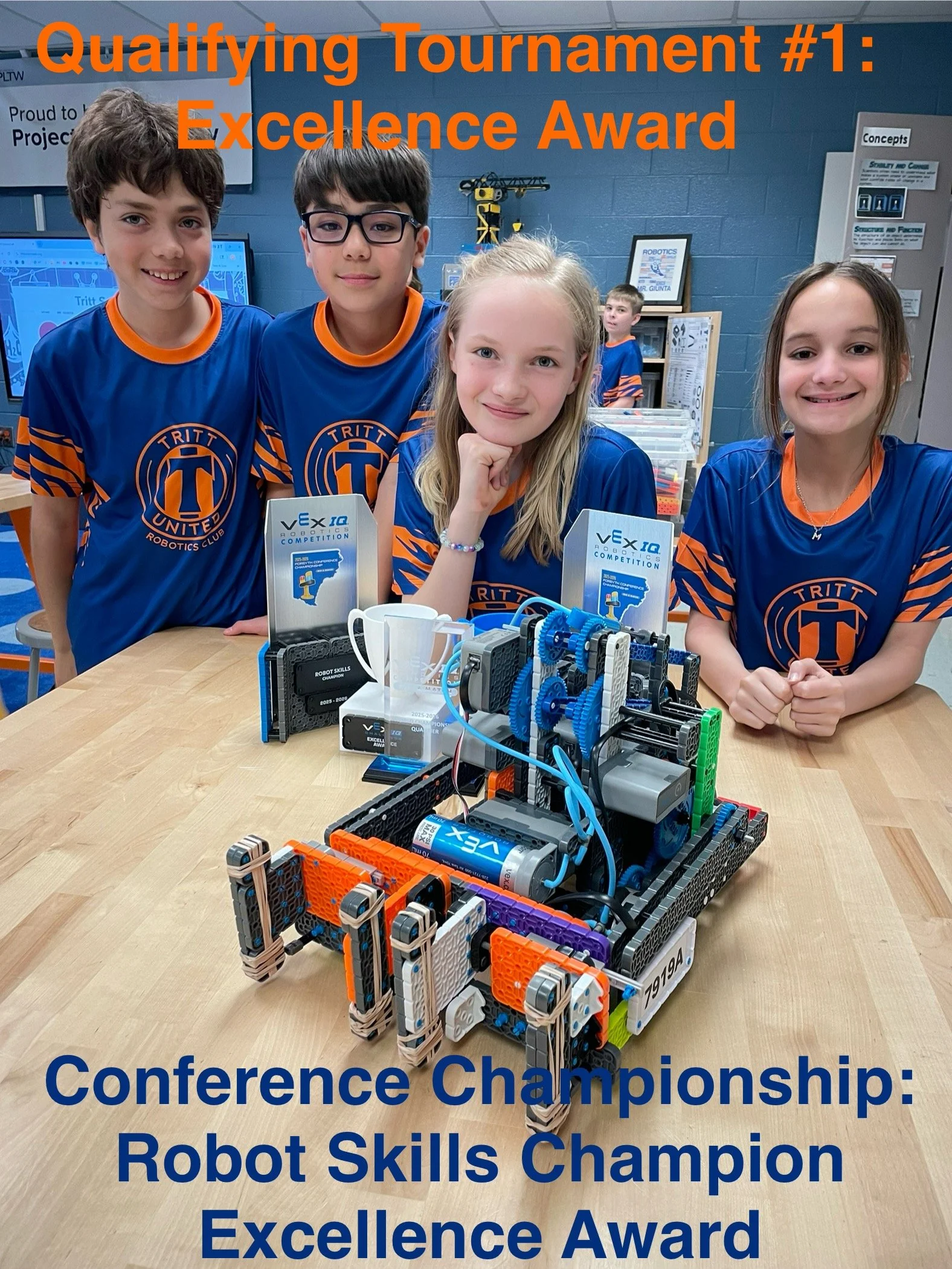 Rising 5th grade students can apply in May to join the Tritt Elementary VEX IQ Robotics Competition Team, Tritt United Robotics Club, for the 2025/2026 school-year. Weekly mandatory practices allow the students to design, build, drive and program VEX IQ robots to compete with other schools in that year's challenge. Next year’s team will practice on Mondays from 2:15-3:30, August thru March. The program fee is $400, which includes all equipment, a jersey, registration and tournament fees, and coaches’ professional development. This is a competitive academic club available to a limited number of students. Applications can be completed in the Science Lab beginning on May 1st and are due by May 16th. Students will be notified by May 19th. Learn more HERE.